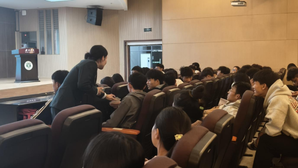 在现场提问交流环节,学子们热情高涨、积极参与。大家将日常遇到的健康困惑、运动相关疑问等认真写在纸条上传递至台上,唐医生逐一耐心解答,针对性地给出科学建议与解决方案。互动过程中,师生交流氛围热烈,问题贴合学生实际需求,解答专业细致,有效解决了学子们的健康疑虑,进一步深化了讲座的学习效果。