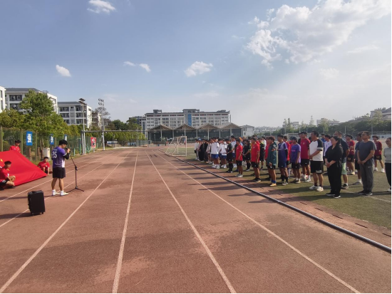 开幕式上,主持人对本次“学思杯”校园足球联赛的举办意义进行简要阐述,向所有筹备人员、参赛队员和裁判员表示诚挚的感谢与热烈的欢迎。伴随着庄严的旋律,全体人员肃立,奏唱中华人民共和国国歌,嘹亮的歌声响彻足球场上空,凝聚着全体师生的爱国情怀与奋进力量。运动员代表庄严承诺,将严格遵守比赛规则,尊重对手、尊重裁判、尊重观众,以饱满的热情、昂扬的斗志投入到每一场比赛中,胜不骄、败不馁,展现普洱学院学子永不言弃的青春风采。